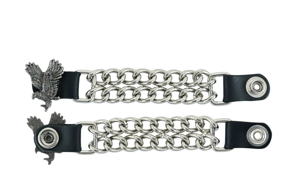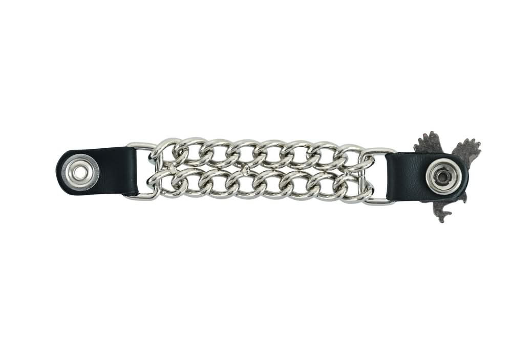 The vest extender also features a chrome motorcycle chain design, giving it a rugged and stylish look.