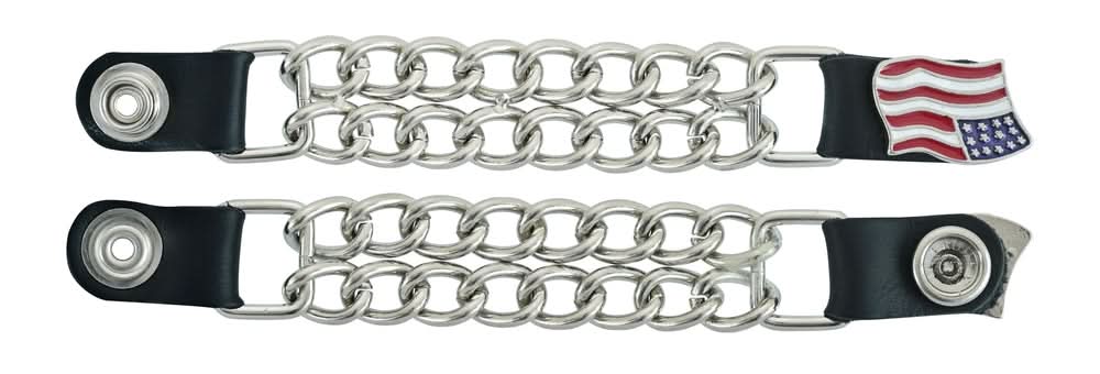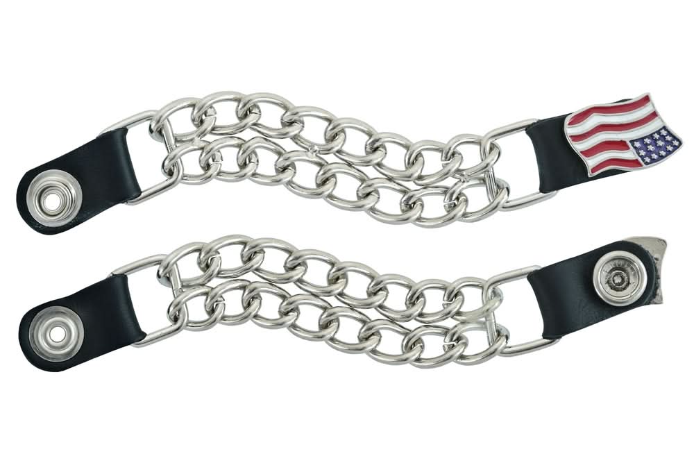 The vest extender also features a chrome motorcycle chain design, giving it a rugged and stylish look.