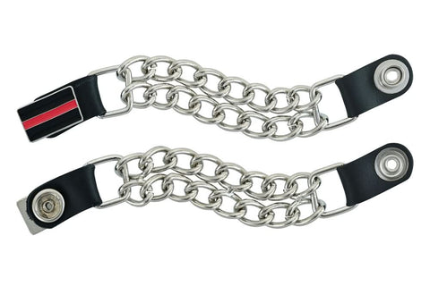 The vest extender also features a chrome motorcycle chain design, giving it a rugged and stylish look.