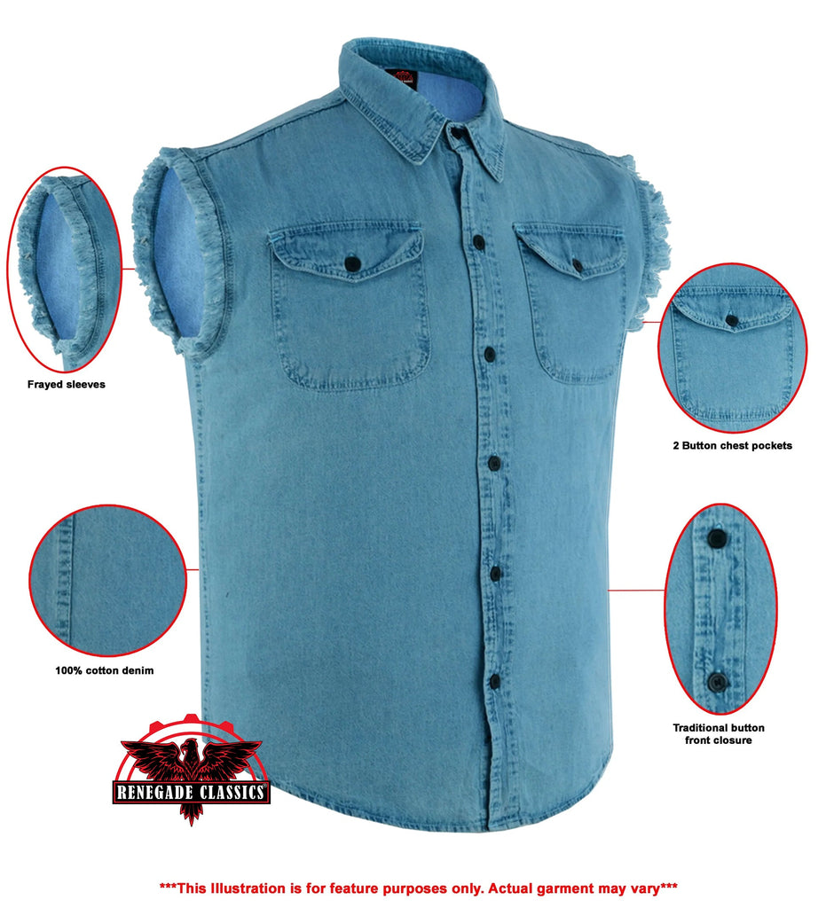Men's Blue Lightweight Sleeveless Denim Shirt