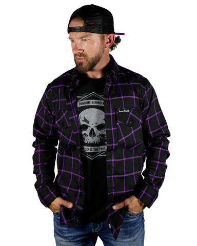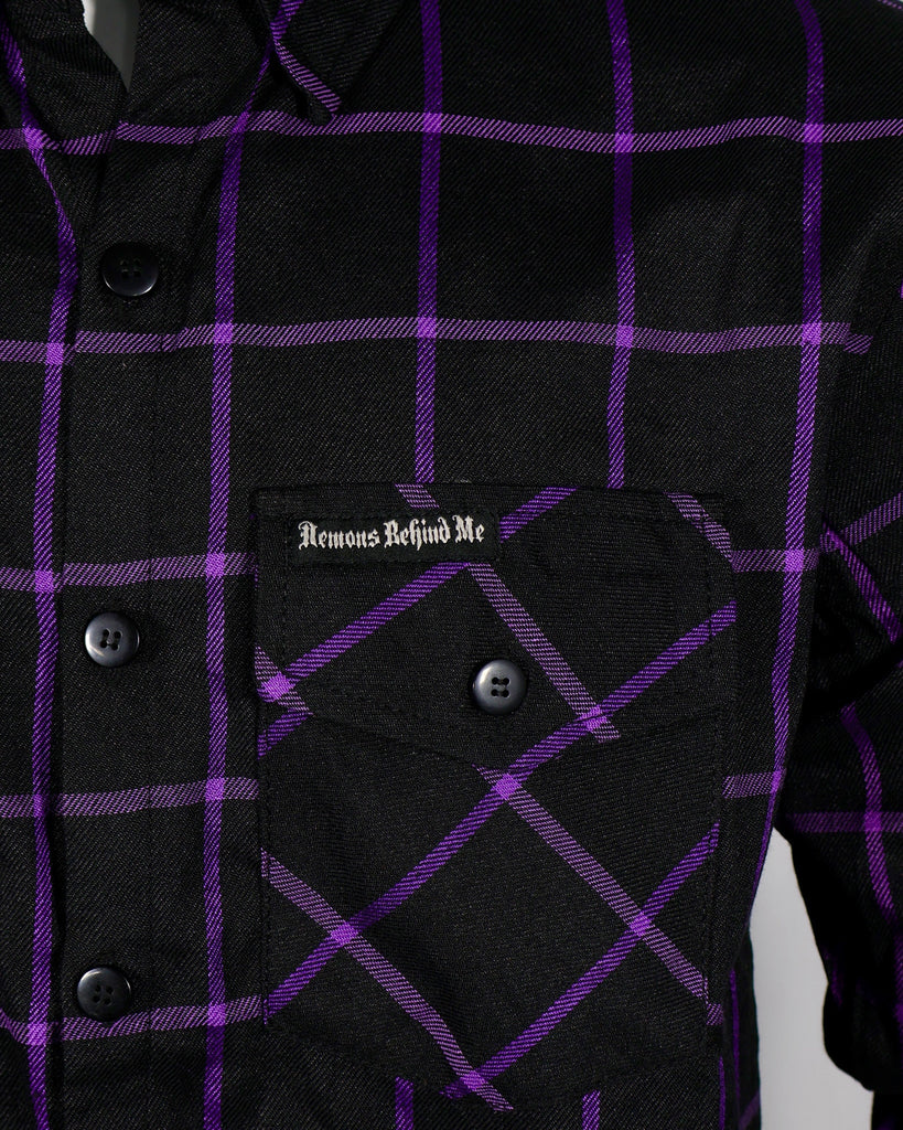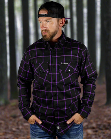 Closeout - The "Raven" Black & Purple Flannel (Hidden Snap Collars)