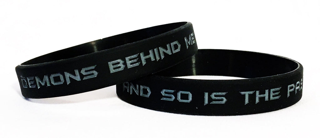 High quality, ink injected, debossed wristbands. "Demons Behind Me" on one side and "And So Is The Past" on the other.