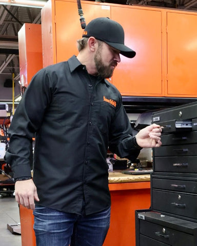 Heavy Duty Mechanic’s Shirt. Embroidered and Screen Printed. Embroidered Front and Screen Printed Back.