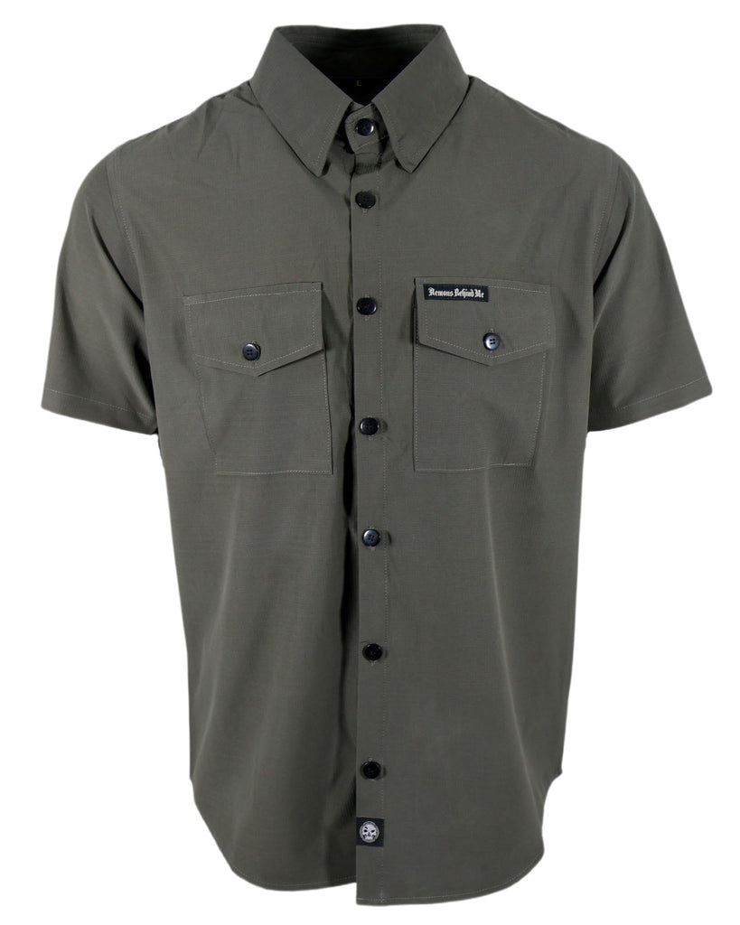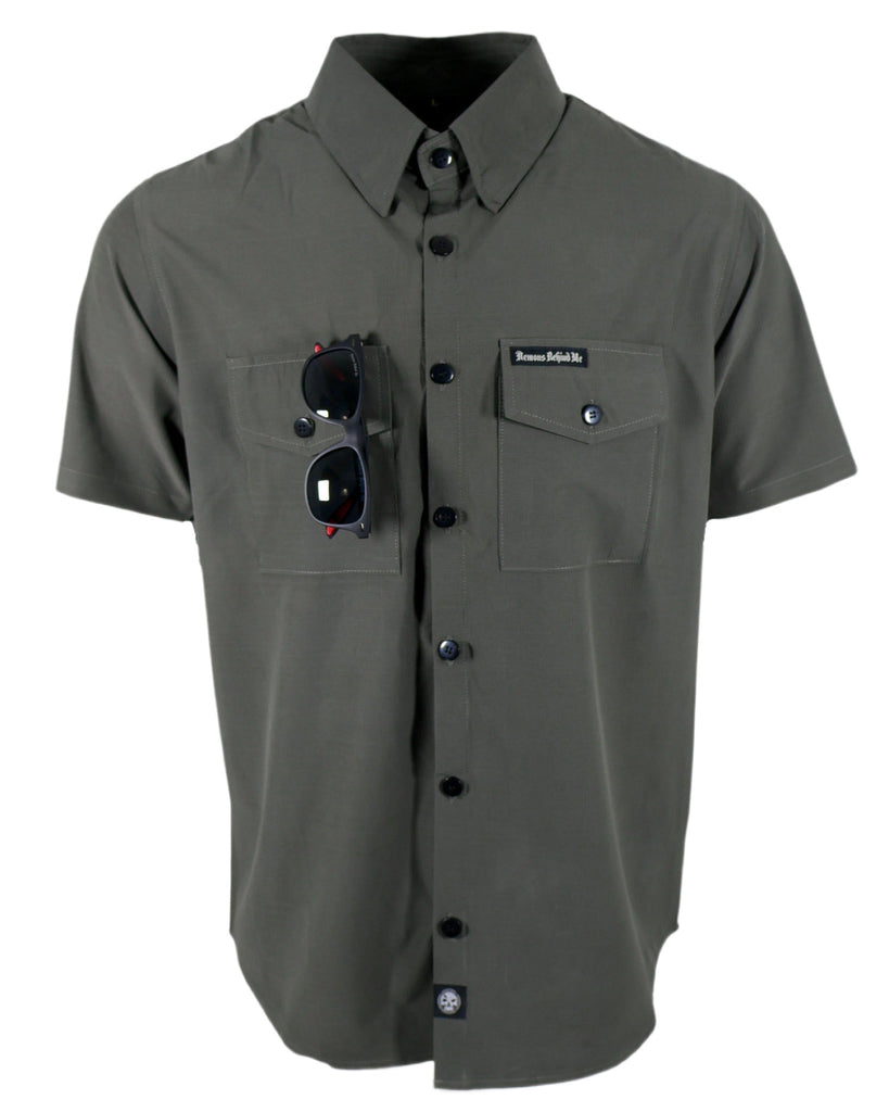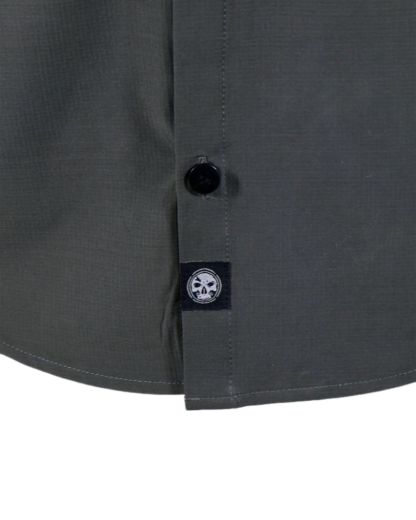 Performance Tech Gun Metal Hybrid Button Up Shirt (Hidden Snap Collars)