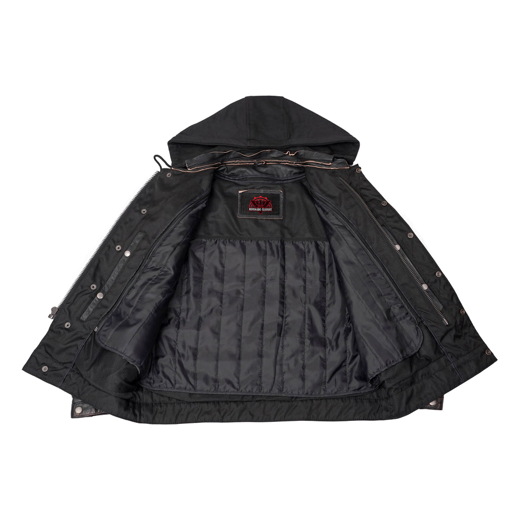 Removable zip-out hoodie.