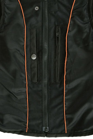 Black Plastic #8 hidden front zipper, with single hidden snap closure at the collar.