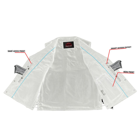 - Two interior concealed carry pockets with built-in holders and snap closures.