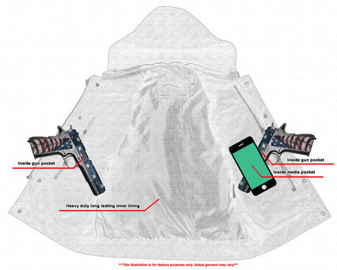 For concealed carry, this style contains two pockets located between the snaps and hidden zipper. The vest comes equipped with holsters and snaps closures for secure storage and quick access.