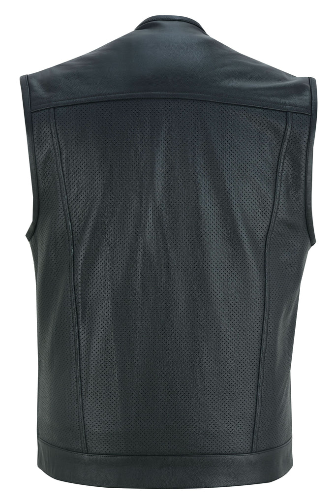 The concealment pockets are located between the snap and zippers for extra security. They are made from durable textile and contain holsters and snap closures. You can ride safely with our men's perforated single back panel concealment vest.