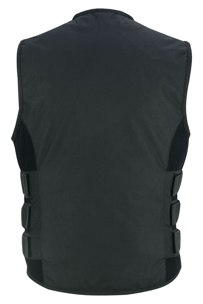 2 inside concealed gun pockets made of special heavy-duty textile with built-in holsters and snap closure.
