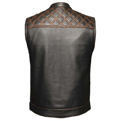 Orange Diamond - Mens Premium Leather Diamond Stitch Club Vest