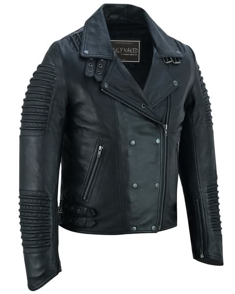 - Our precisely crafted leather jacket blends optimal protection with rugged style, featuring specific leather thickness, ribbed accents, and adjustable belts.