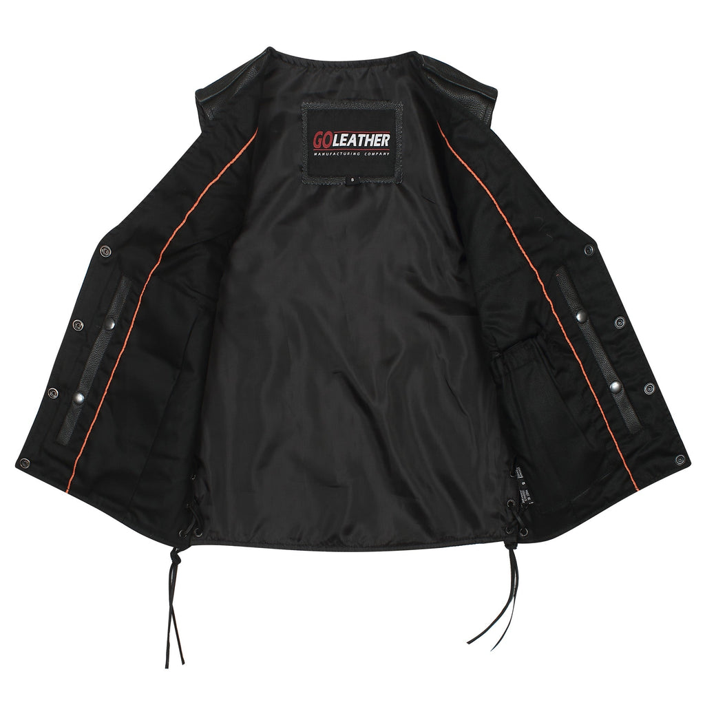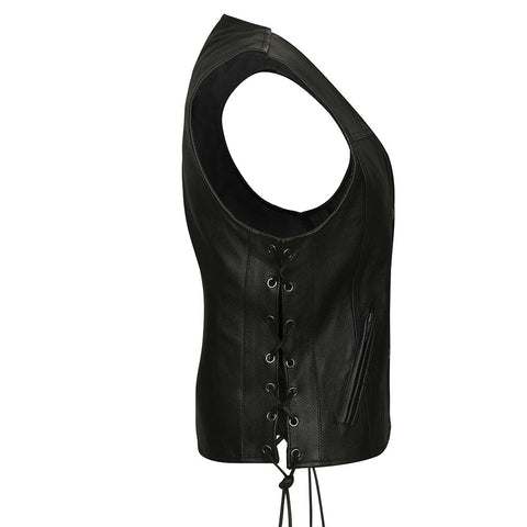 Shine with elegance and strength in the Aurora Vest, a standout design made for the bold and stylish woman rider. With side laces for a customized fit, zippered hand pockets for convenience, and concealed carry weapon (CCW) pockets for added functionality, the Aurora Vest seamlessly blends practicality with striking aesthetics. Crafted with premium materials and designed to turn heads, this vest is a perfect choice for those who demand both performance and beauty on the road. A true favorite, the Aurora Vest embodies confidence, comfort, and timeless appeal.