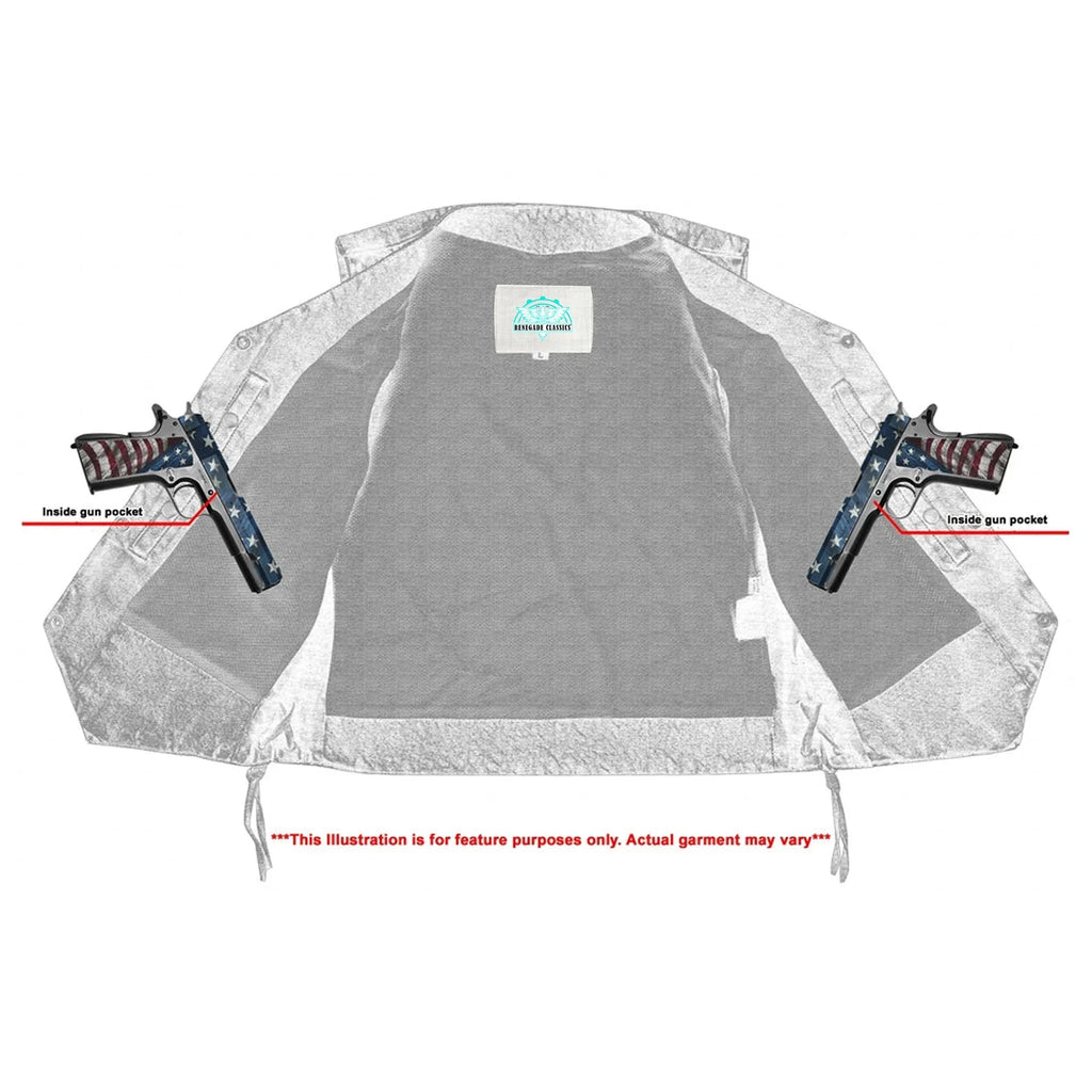 2 inside concealed Smart Access Pocket made of special heavy-duty textile with built-in holsters and snap closure.
