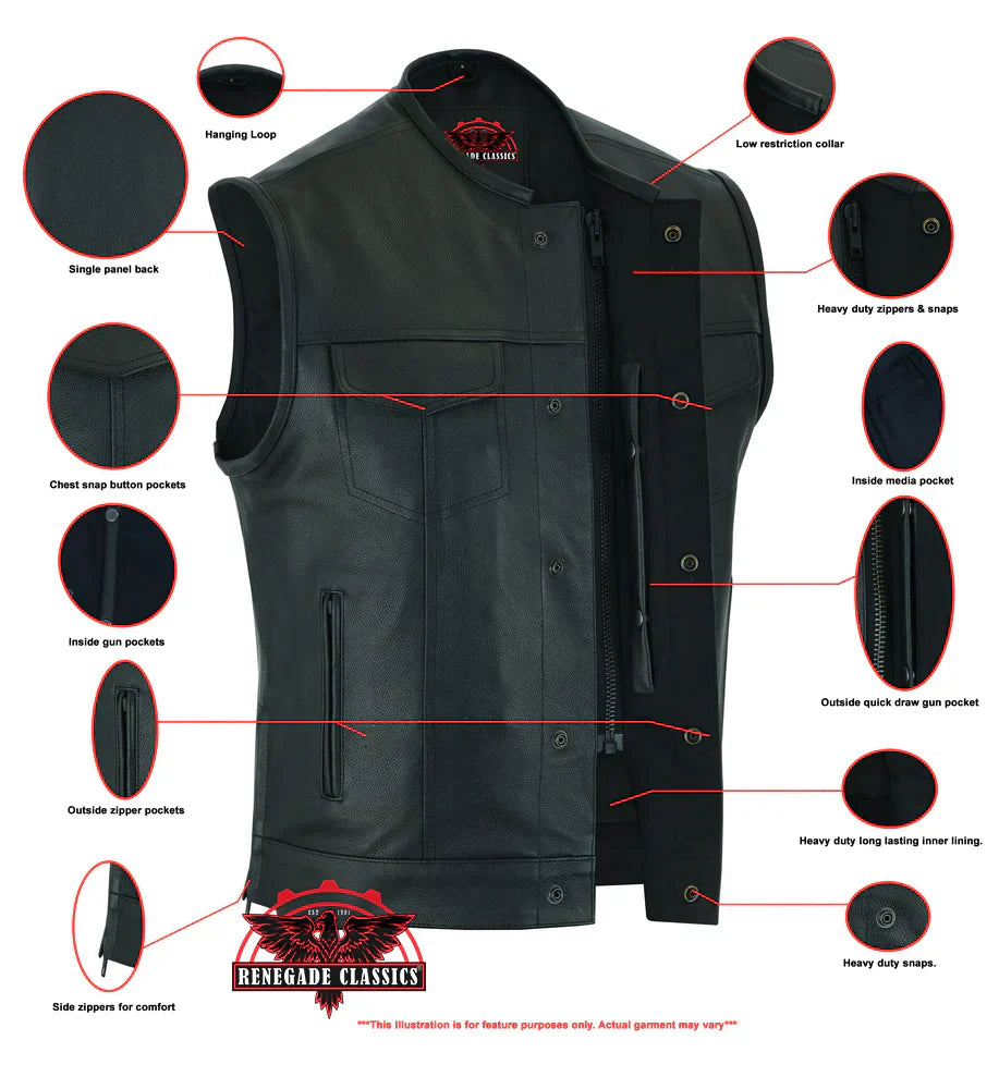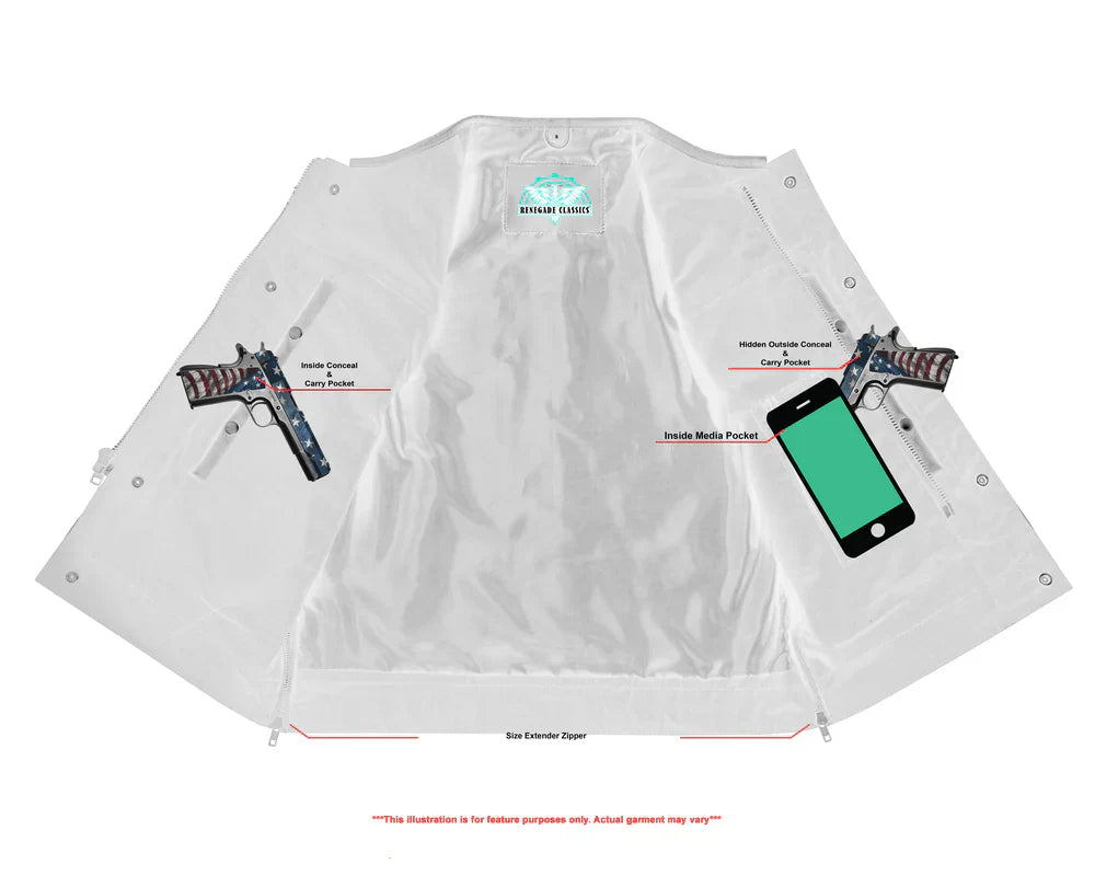Find your men's gun pocket vest with a black metal zipper from Renegade Classics.