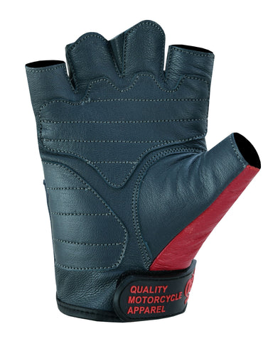 Men's fingerless glove made in premium drum-dyed Goat skin leather. Featuring reinforced palm for long haul comfort, extended pull-tabs for easy removal, reflective dimensional stars, rubber graphics and an adjustable wrist strap.