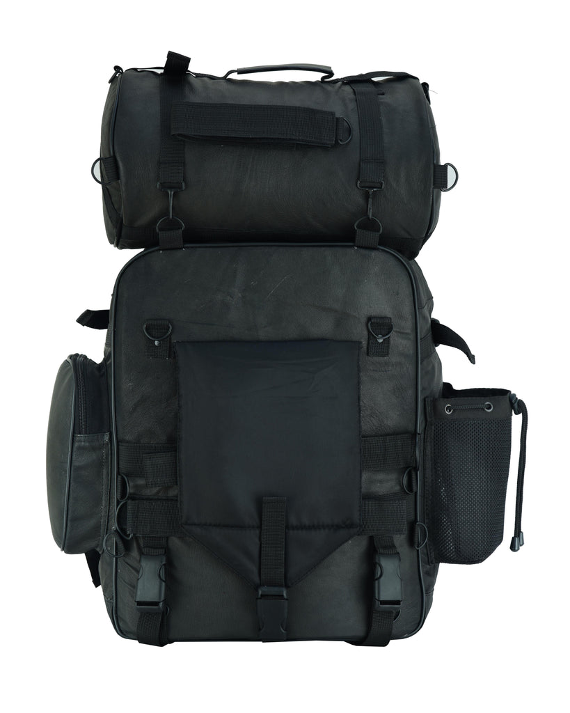 Includes tool bag, barrel bag and a 14" X 18" X 7-1/4" sissy bar backpack.