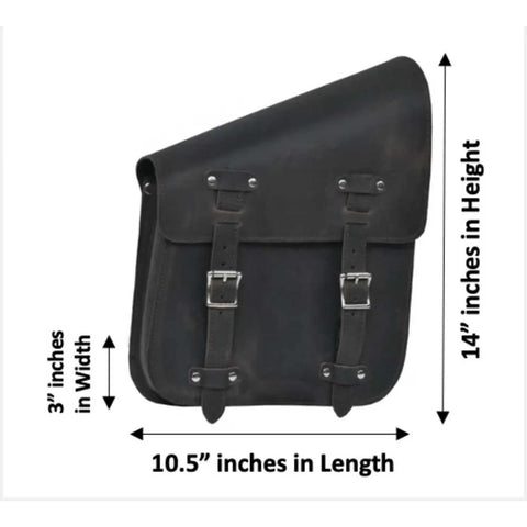 This hard leather swing arm bag by Unik combines rugged durability with classic style. Crafted from cowhide leather in a distressed brown finish, it exudes a timeless appeal suitable for motorcycle enthusiasts seeking both functionality and aesthetics.