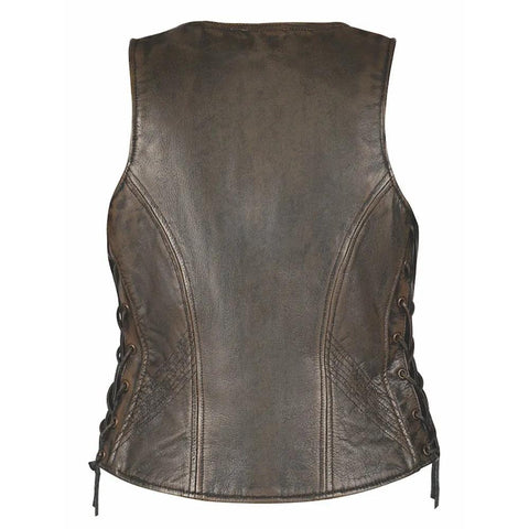 The Unik Premium Style # 6989.2BR leather vest blends classic style with modern utility, ideal for women who value both fashion and practicality. Key features include: