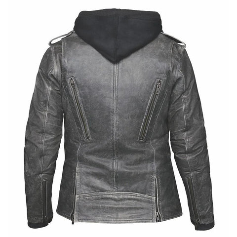 Discover the perfect blend of style and functionality with the Style # 6841.GY Ladies Premium (Yomi) Vented Hoody Jacket by Derringer Leather. Crafted from luxurious lambskin leather in classic gray, this jacket combines a modern hoody design with premium features for comfort, protection, and practicality. Step into modern sophistication and practicality designed to elevate your wardrobe with its luxurious material, contemporary design, and advanced features suitable for various outdoor activities and urban adventures.